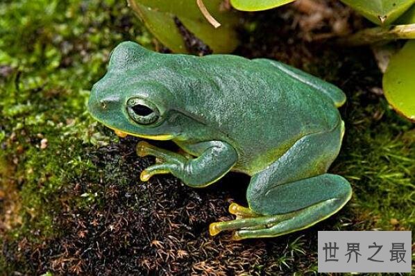 树蛙被认为是颜色最绿的蛙,它们经常在树上生活,后肢很长,指、趾间有发达的蹼,可以在空中滑翔,它们的颜色和植物极为相近,能够轻易隐藏和保护自己。