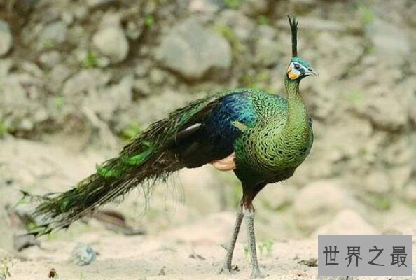 绿孔雀体形较大,雄鸟的羽毛呈翠蓝绿色,雌鸟主要为翠金属绿色,它们经常成群活动,晚上栖息在树上,胆子比较小,发现有人靠近会立刻逃走。