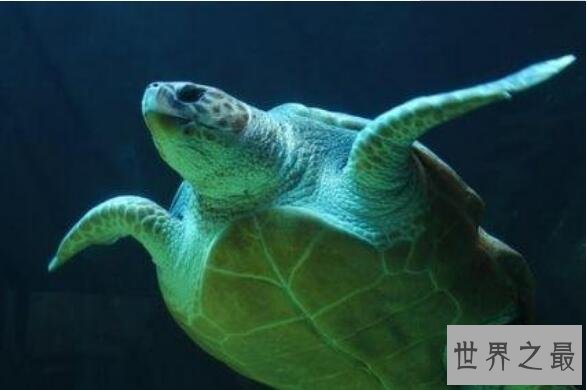 绿海龟是体型最大的硬壳海龟之一,它们体形较为庞大,是食草动物,主要以海草和海藻为食,所以体内脂肪累积了许多绿色色素,外表也呈现绿色。