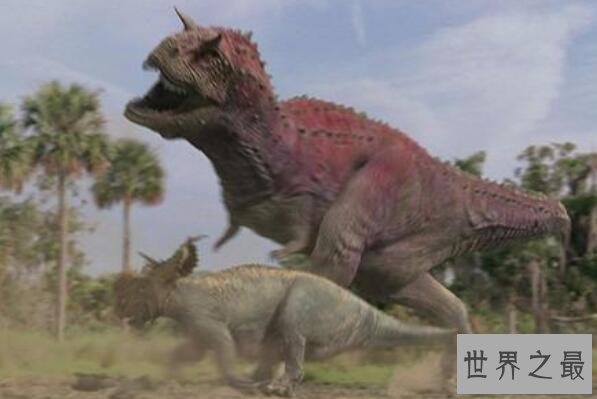 食肉牛龙是一种大型的肉食性恐龙,也是已知的奔跑速度最快的大型恐龙,它们与众不同的地方是眼睛上方长有一对类似牛的角和两条很短的前肢,身体上也覆盖着密密麻麻的鳞片。