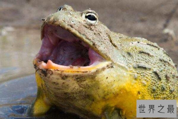 这种蛙类的学名是“ConrauaGoliath”,是目前地球上现存的最大的无尾目类动物,体长可以达到33厘米,而这种巨蛙的栖息范围相对来说较小,但它们的寿命最高可以达到15年,主要是以蝎子、昆虫和小型青蛙为食。它们的听觉极为灵敏,不易接近。