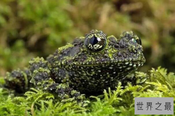 越南苔藓蛙是树蛙科家族的亿元,主要喜欢生活在亚热带或者热带潮湿的低地森林,由于它的皮肤布满了绿色黑色肿块、斑块和结节,就像是生长在石头上的苔藓而得名,也因为皮肤的特殊,它也被称为青蛙家族中的伪装高手。