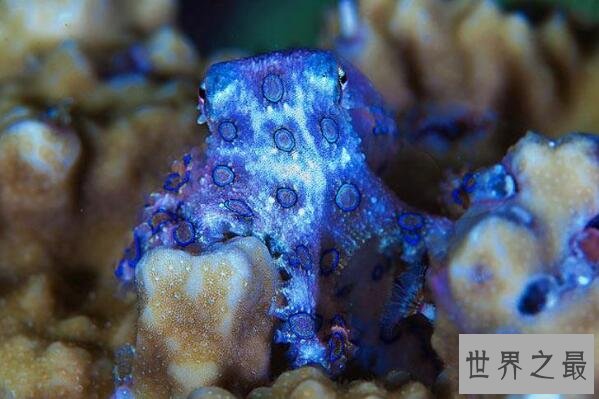 蓝环章鱼是一种很小的章鱼品种,虽然体型只有高尔夫球大小,但却含有强烈的毒素,被它咬上一口就能致人死亡。