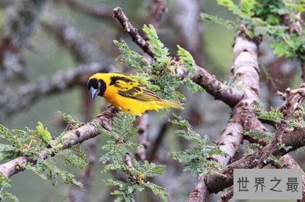 金色织巢鸟主要生活在非洲东部和南部地区,它们长着金黄色的羽毛,都以籽为食,经常会成群出没掠夺籽实作物。