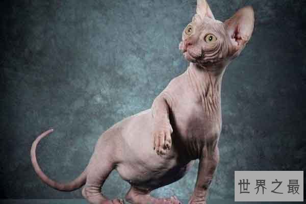 世界十大外表奇特的猫之一,学名叫斯芬克斯无毛猫,是由基因突变而来的品种,从出生开始就没有毛。肩膀周围有皱纹,第一眼看会觉得有点恐怖但是会越看越迷人。其价格比较昂贵身体也比较娇贵又怕冷又怕热。