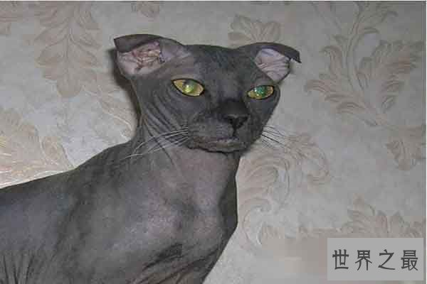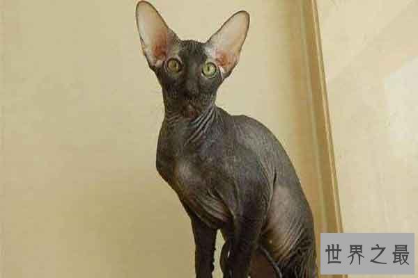 也是无毛猫的一种,有着奇异的外表。打折的耳朵,光滑的皮肤,甚至因为棱角分明的脸和又窄又大的眼睛被称作是“狗脸”。当然虽然它长得奇怪但其实它性格很好,不管是人还是其他动物都能和平相处。