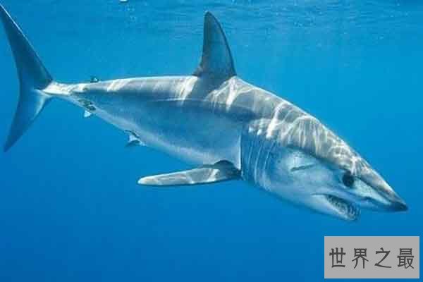灰鲭鲨也是鲨鱼的一种,游速非常快,对海豚掠食比较频繁,灰鲭鲨的牙齿比较细长,所以很容易撕裂食物,目前灰鲭鲨也被列入了濒危物种。