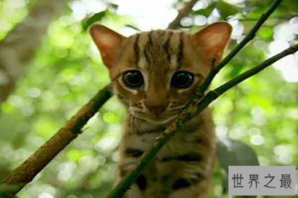 锈斑豹猫是一种生长在大自然中的野猫,身长35-48公分,虽然有着萌萌的娇小的身体,但它却有着像老虎一样的咬合力,视力也是人类的六倍,跳跃能力也不差。被列为即将濒危的物种在保护着。