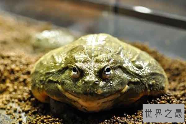 非洲牛箱头蛙即非洲牛蛙,是世界上最大的牛蛙,身长可以达到20公分,重量可以达到4斤。有着具有攻击性的利齿,在捕食的时候回利用弹跳能力扑向猎物吞食。现在也作为一种宠物,作为宠物蛙由于体型过大,所以主人也能体验到喂食饲养它的乐趣,在饲养时需要先为它提供一个有足够空间的水箱或水盆,对土质、温度、湿度等也有一定要求,还有就是食物,要根据不同成长时期来控制每次投喂的食量。