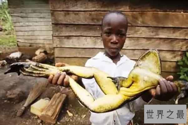非洲巨蛙是世界上最大的青蛙,它的身体长30公分,算上腿长可以达到一米。是凶猛的肉食动物,有一些研究数据表明非洲巨蛙可以在河流快速的地方组建自己的小池塘,由此可见它的力气是很大的,很强壮,生活的区域需要水质比较好,所以周围人们对环境的污染以及过度捕猎已经导致这种生物濒临灭绝。