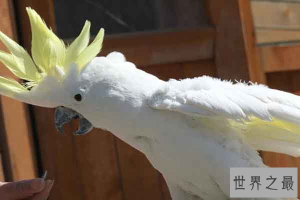 葵花凤头鹦鹉因为生气时立起来的黄色冠羽像葵花一样所以有这个名字,会吃农作物损伤农作物,寿命很长,但是现在也是濒危动物了。