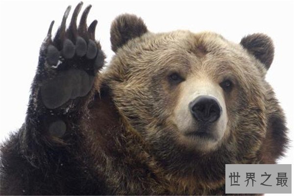 灰棕熊,主要生活在寒温带,颜色呈白色或灰色,体重约为500千克,它的爪子威力巨大,强大的熊掌可以对其他动物造成伤害,它是一种战斗力比较强的动物。