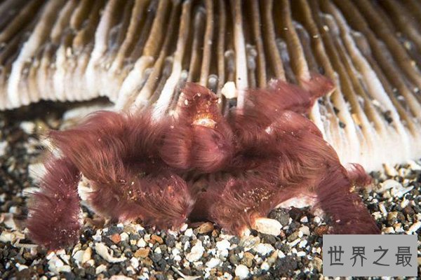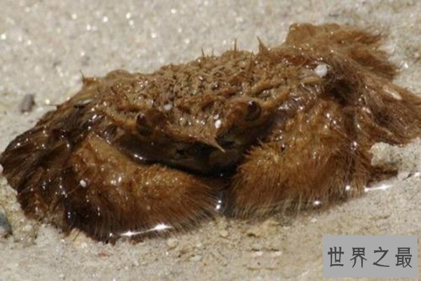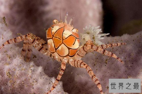 红毛猩猩蟹是世界十大最奇怪的螃蟹之一,它有着和类人猿相似的外表,身上长满了橙色的绒毛,外形极其微小,是装饰蟹的一种。