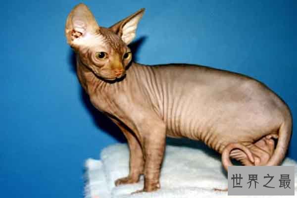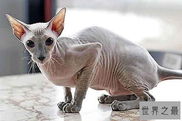 加拿大无毛猫是世界十大外表奇特的猫之一,它是经过人们培育的杂交猫,其无毛的特点专为对毛敏感但是又非常喜爱养猫的人们选育的,但因此皮肤显得非常多折皱,也被一些人觉得丑。