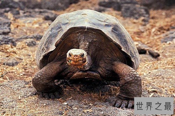 加拉帕戈斯象龟是体型最大的陆龟,它有着极慢的移动速度,脖子很长头很大,背甲厚重,觅食常常需要好几个小时,并且可以忍受长时间的不进食。