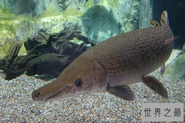 鳄雀鳝是世界十大最大的淡水鱼之一,它是巨型的食肉鱼类,有着很强的攻击性,身体细长,嘴巴有着锋利的牙齿,是所在水域的食物链顶端属于没有天敌的存在,最重体重可以达到148公斤,很有高危险性的存在。