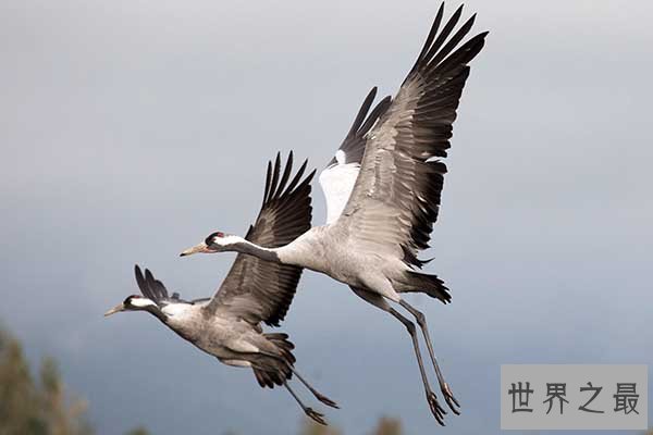 灰鹤是一种大型涉禽,它的全身呈现灰色有着超长的大腿,常常在高度超海拔8000的地方飞行最高可以达到海拔10000米,用来躲避老鹰的攻击。它有着固定的迁徙时间和地点,会自动的排列成人字型和“V”型,