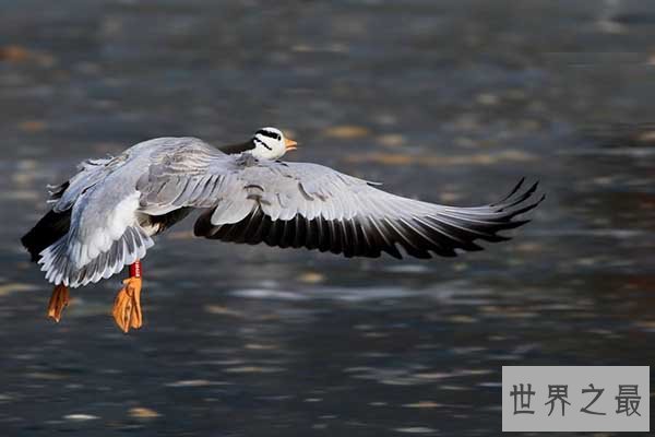 斑头雁是一种中型雁类,它的头上有着两条独特的黑色斑带,喜欢群居生活,有着超多红细胞是一种很适合高原生活的鸟类,它的飞行高度常常可以达到海拔8800米。