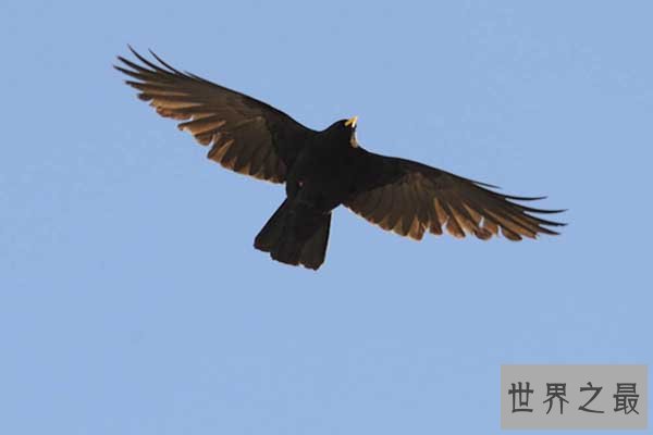 黄嘴山鸦是世界十大飞的最高的鸟之一,它是山地栖息鸟类,长期生活在峭壁山崖环境之中,有着较高的飞行高度可以达到海拔8100米。
