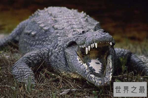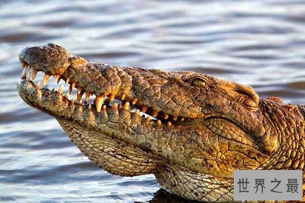 尼罗鳄是非洲最大的鳄鱼,它有着超强的环境适应能力,对于自己的领地有着超强的保护意识,它可以独自对付一只体型巨大的犀牛,每年丧生在他口中的人类不在少数。