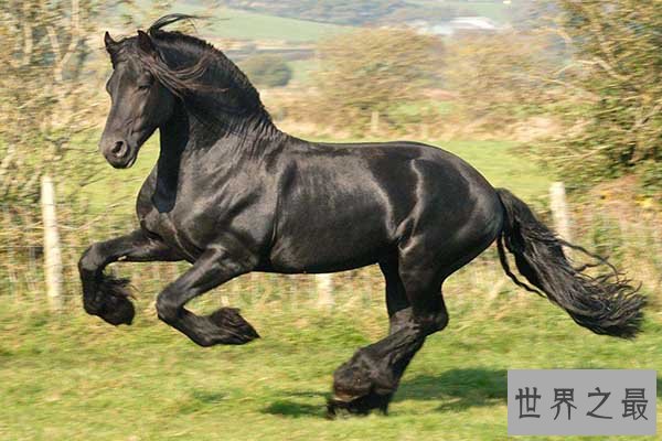 弗里斯兰马有着“弗里斯兰的黑珍珠”的称号,是荷兰唯一的单一血种的马,它的全身都呈现漂亮的黑颜色还有着超长的尾巴,四肢强壮,有着超强的耐力,显得高贵又霸气,曾经常被用来当做全能战马。