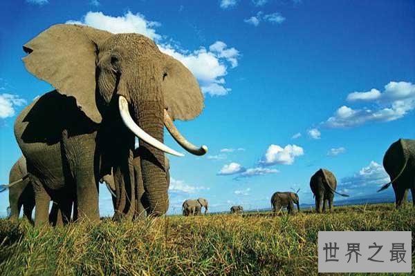 非洲草原象是世界上最大的陆地动物,它有着巨大的体型和超长的牙齿,性格极其暴躁,会主动攻击猎物,它的鼻子就足以把人类绞杀,是需要特别远离的动物。