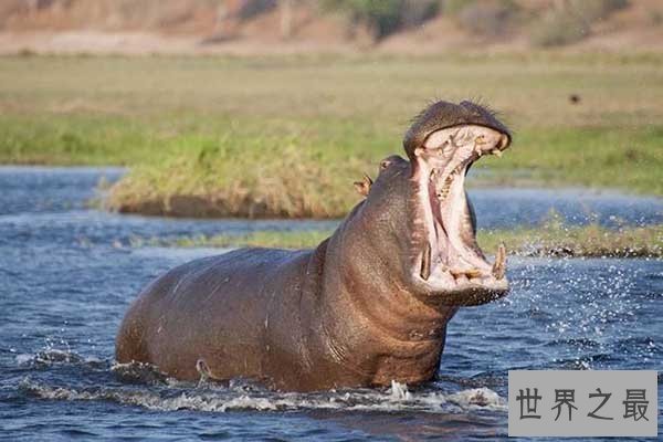 河马是世界上最大的淡水哺乳动物,它有着一张巨大的嘴凶猛的性格,巨大的獠牙用来抓捕撕咬猎物,巨大的撕咬力可以瞬间把鳄鱼一分为二,它还是杀人最多的动物之一。