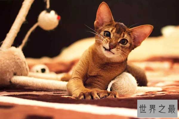 阿比西尼亚猫又被叫做“芭蕾舞猫”,它被认为是神圣之物的“古埃及猫”的后裔,整体看上去优雅又高贵,它是短毛但是毛发十分的柔软,颜色更是有着明暗变化看上去十分的漂亮。