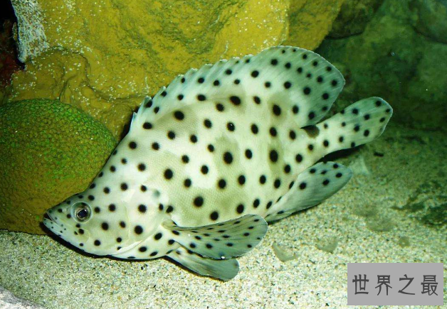 豹星斑因为其霸气的鱼身,所以有着皇帝斑的美称,这种斑鱼分布在西印度洋的日本南部至澳大利亚海域,长达70厘米,身子和头部呈现橄榄色和红褐色,奇鳍和头身中布有细小的蓝点,惹人注目。