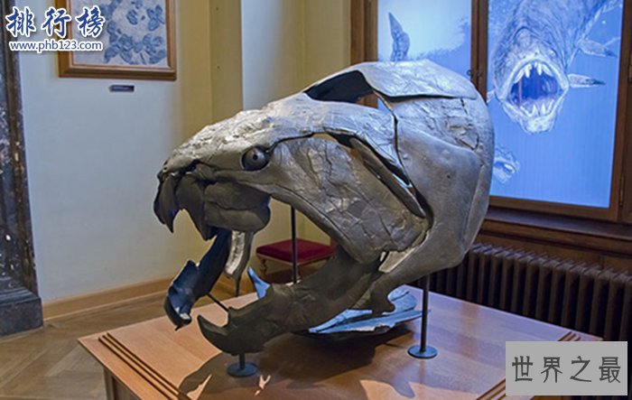 邓氏鱼是一个30英尺长的食肉鱼类,它的外形比较奇特,它没有牙齿,而是拥有着像乌龟一样有骨头的脊。据计算,它们的咬合力为每平方英寸8000磅,它具有历史上最强的咬合力。