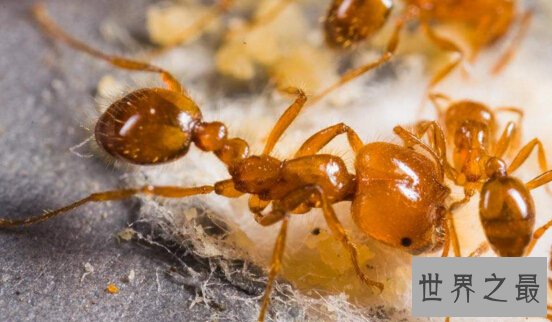 除了世界上最大的蚂蚁,而贼蚁就成了世界上最小的蚂蚁,贼蚁在蚁巢附近偷窃播种的谷物得名。贼蚁也被称为油脂蚁,因为他们会被油脂吸引。贼蚁原产于美国,在美国中部和东部沿分布普遍。而世界上最大的蚂蚁则主要分布在澳大利亚。