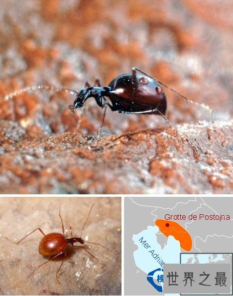 Leptodirus甲虫平均只有一厘米长,科学家认为它主要以穴居动物的尸体为食。目前这种物种只在欧洲的阿尔卑斯山脉被发现过。
