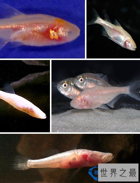 这种鱼类又叫墨西哥脂鲤,它体长约为10厘米,通体呈半透明状。它们不仅仅是彻彻底底的失明,同时身体上还会呈现出白化病的特征。