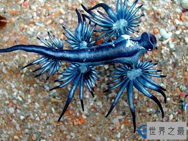 近日,澳大利亚黄金海岸布罗德本特海滩惊现奇特蓝色生物,状如科幻电影中的外星球生物。据悉,该生物是当地人露辛达·弗瑞在海滩散步时发现的。她将其在沙滩中蠕动的画面拍摄成视频并放到网上,网友纷纷猜测这神秘的生物到底是什么。经格里菲斯大学海洋生物学家凯莉·皮特鉴定,该海洋生物为大西洋海神海蛞蝓,俗称海燕,或者蓝龙,以水螅、水母等为主食,体态优雅、颜色鲜艳,外型美得不像是地球上的生物。下面排行榜123网为您盘点十大超可爱的海蛞蝓。