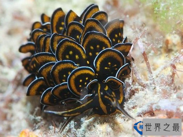 这种海蛞蝓生活在太平洋,身上充满黑底橘边的角突。