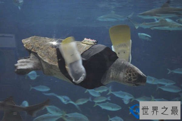Yu是一只约25岁的海龟。因为被渔网缠绕,它在挣扎中失去了前肢,日本神户一家水族馆帮它装上了新的义肢,让它重新回到了水中。