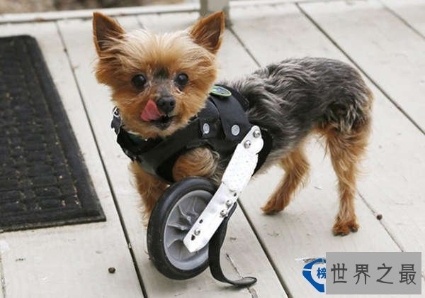 约克夏梗犬“奥普”(Hope)因意外失去一只前腿。安上车轮后,她又能像以往一样奔跑了。