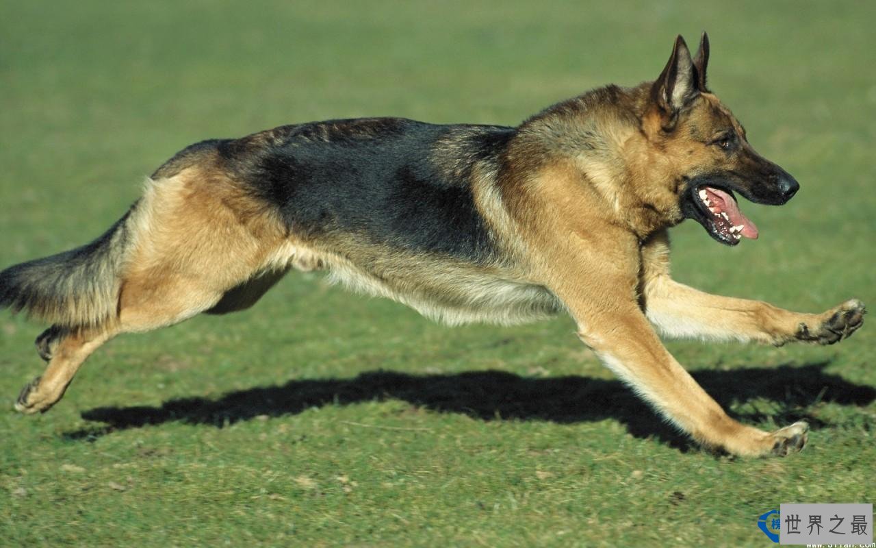 德国牧羊犬(英文名:German Shepherd Dog) [简介] 一条好的德国牧羊犬给人的印象是:结实、敏捷、肌肉发达、警惕、且充满活力。非常平稳,前后躯非常和谐。体长略大于身高,身躯很深,身体轮廓的平滑曲线要胜于角度。