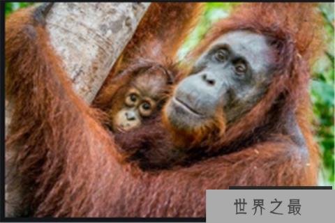 雌性红毛猩猩,雌性红毛猩猩是世界上最为幸苦的妈妈,雄性的红毛猩猩只负责只负责交配,至于生孩子和养孩子都是雌性红毛猩猩自己一个人的事,它们要照顾自己的孩子7年,只至孩子独立。