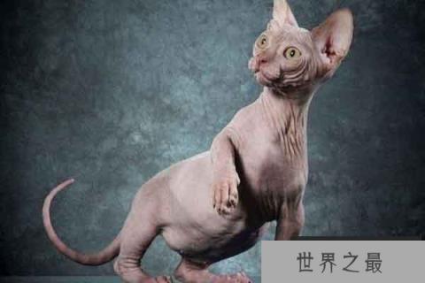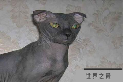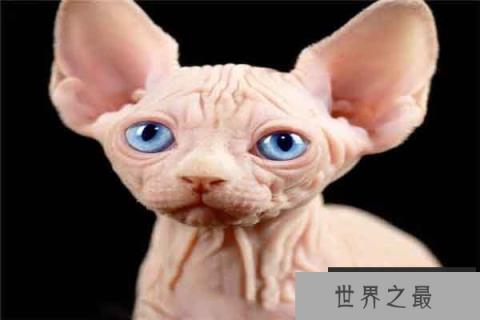 世界十大外表奇特的猫之一,学名叫斯芬克斯无毛猫,是由基因突变而来的品种,从出生开始就没有毛。肩膀周围有皱纹,第一眼看会觉得有点恐怖但是会越看越迷人。其价格比较昂贵身体也比较娇贵又怕冷又怕热。
