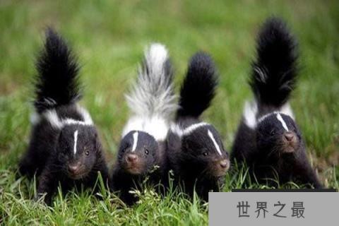 第一个上榜世界十大最臭动物的是臭鼬,它是一种杂食性的动物,有着娇小的体格看起来十分的可爱,面对危险时会用屁股后面的腺体射出极臭的黄色液体,能够让三米内的攻击者产生短暂失明,味道传播远,在几百米外都可以闻到。