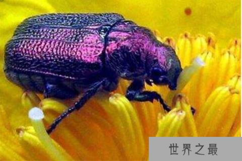 紫色甲壳虫有着和其它甲壳虫一样的外形但是颜色不相同,能够利用颜色完美的伪装自己,进行捕猎和躲避天敌,由于人眼所看颜色有限其实它呈现是独特的彩虹色而非单独的紫色。