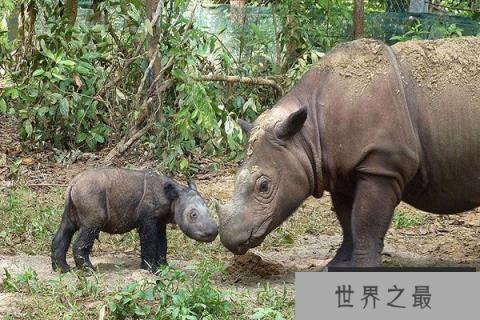苏门答腊犀牛是最小的犀牛,人工饲养率是很低的,它们对于干扰特别敏感,随着栖息地的减少数量也极具减少,因为它犀牛角是高价值观赏和药用品人类对它们也是过度捕猎。