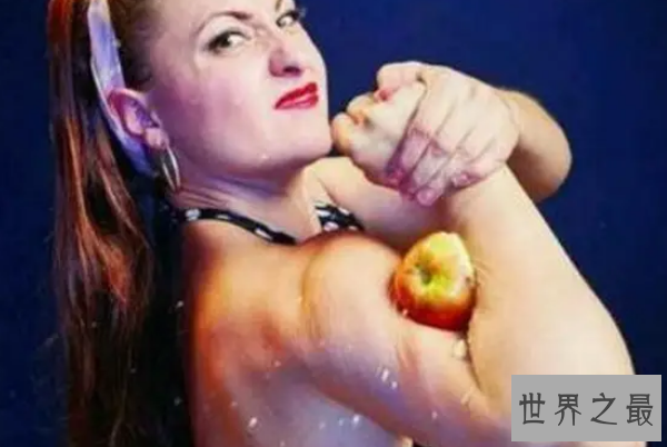在2013,美国洛杉矶。一位会计师用她的肱二头肌生生在一分钟生生挤碎了8个苹果,由此创下了世界吉尼斯纪录。
