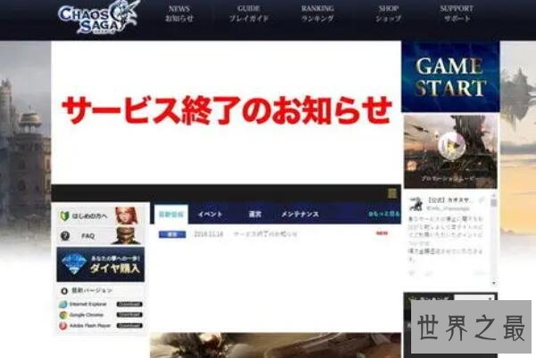 这款在DMM登录的页游《Chaos SAGA》只开服了一天就迅速停服,是一款创造了日服游戏新纪录的游戏,在这之前由深圳某手游公司开发的手游《暗黑光年》在日本市场开服运营11天就宣布了停运。