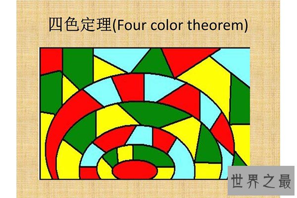 四色问题的内容是:“任何一张地图只用四种颜色就能使具有共同边界的国家着上不同的颜色。”用数学语言表示,即“将平面任意地细分为不相重叠的区域,每一个区域总可以用1,2,3,4这四个数字之一来标记,而不会使相邻的两个区域得到相同的数字。”好了我晕了。