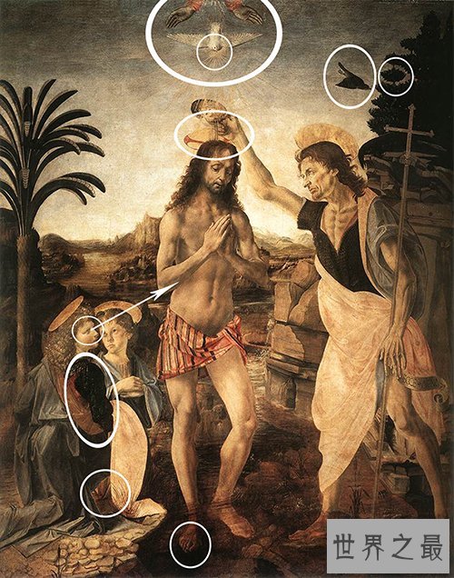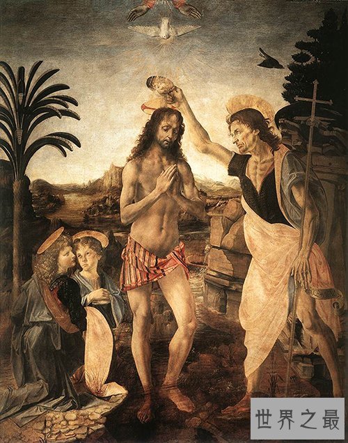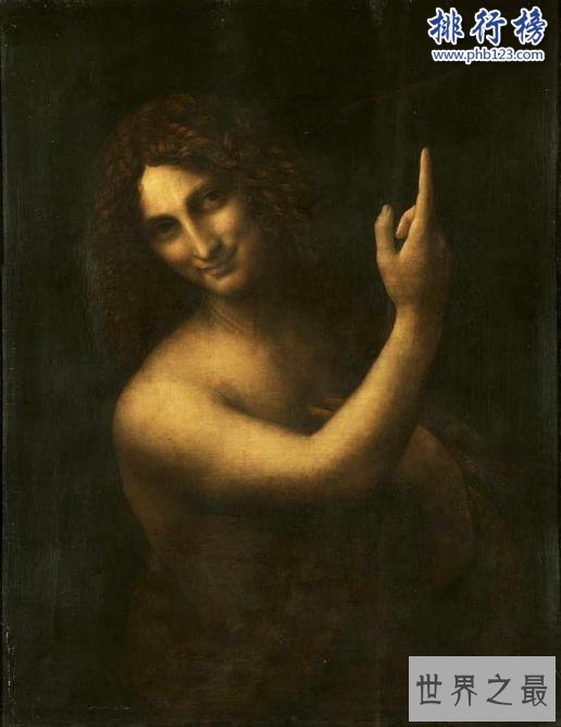 相信是达芬奇的最后一幅作品,施洗者圣约翰画于1513年至1516年之间,当高文艺复兴时期过渡到了矫饰主义。在这部作品中,莱昂纳多以一种俏皮的方式描绘了圣约翰,这个男人通常被认为是一个火热的角色。在这里,他长长的卷发,穿着毛皮,有着与蒙娜丽莎穿的那种神秘的笑容。圣约翰的手指伸向天空,暗示着通过洗礼得救的重要性。这个手势也出现在莱昂纳多的其他作品中。