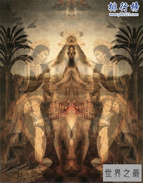 排行榜,品牌排行榜信息技术专家斯拉维萨?佩斯奇(Slavisa Pesci)通过在原作之上叠加一幅半透明的镜像版本,创造了一种有趣的视觉效果图。结果是两个人看起来像圣殿骑??士,出现在桌子的两端,而一个可能抱着婴儿的人站在了耶稣的左边。