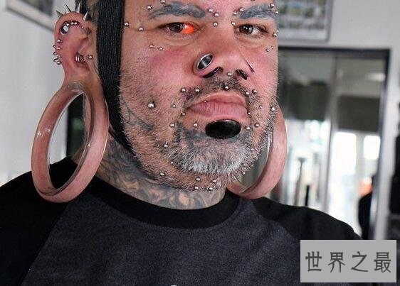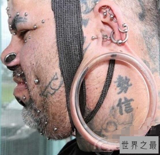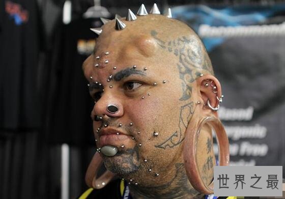世界上总有一些人喜欢对自己的身体做一些奇怪的事情。想很多吉尼斯世界纪录里都是人为的对身体的改造。就像全球脸上穿孔最多的女人、拥有世界上最大的胸部的人,还有这个世界上耳洞最大的人。人为的将自己的耳洞套进了11厘米大的圆环,简直是让人惊悚的存在。下面排行榜123网为你公布世界上耳洞最大的人,直径11厘米(可伸手穿过)