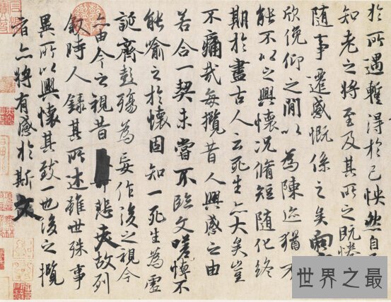 作为世界上写字最好看的人,王羲之的《兰亭集序》为历代书法家所敬仰,被誉作“天下第一行书”。王兼善隶、草、楷、行各体,精研体势,心摹手追,广采众长,备精诸体,冶于一炉,摆脱了汉魏笔风,自成一家,影响深远。王羲之的书法平和自然,笔势委婉含蓄,遒美健秀。